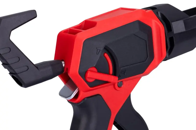 • dvě varianty vytlačování, přepínač v horní poloze automatické zastavení úniku tmelu nebo lepidla - čistá práce bez zbytečného plýtvání, přepínač v dolní poloze souvislé tmelení / lepení