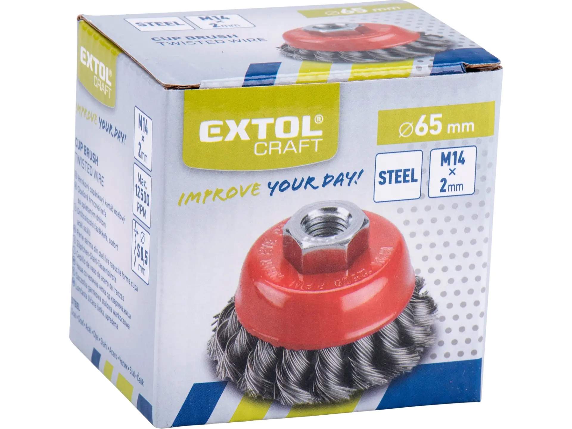 Řada technických kartáčů Extol nabízí široký výběr kartáčů pro všestranné nasazení, např. čištění povrchů materiálů, k odstraňování barev, nečistot, rzi, houževnatých nánosů, ke zdrsňování, odjehlování, odokujování apod. Upínání na úhlové brusky pomocí matice M14 a na vrtačky pomocí stopky o průměru 6mm.