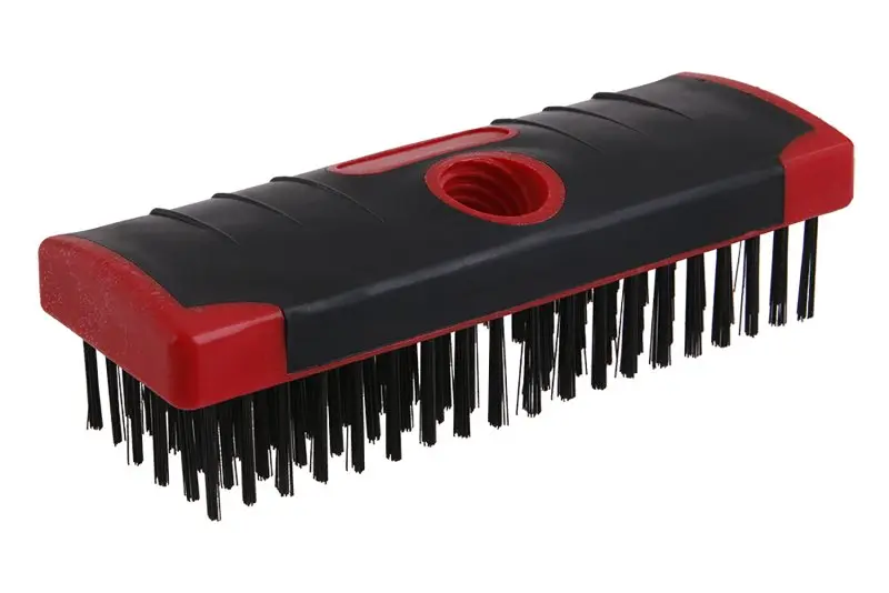 Ocelový kartáč se závitem, možnost našroubovat násadu, ocelový drát - pozinkovaný, plastové tělo s pogumováním, použití: k číštění železných kovů jako je ocel, na zdrsnění a hrubé odstranění starých nátěrů. Rozměr: 6 x 19 mm.