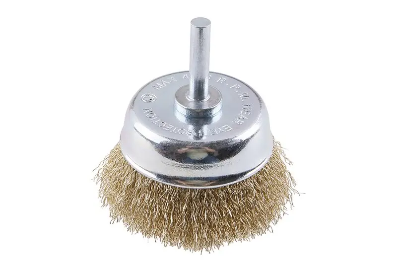 Rotační kartáč - hrnkový, provedení : vlnitý drát 0,25 mm - pomosazený, průměr 65mm, stopka 6 x 27 mm, pozinkované tělo kartáče, počet drátů : 1512, délka drátu : 18,5 mm, max. přípustné otáčky : 4500 1/min, použití : pro leštění, zdrsňování, ostranění rzi a otřepů, balení : blistr s eurootvorem.