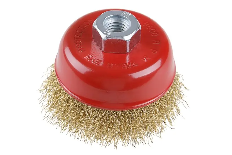 Rotační kartáč - hrnkový, kartáče FESTA zaručují kvalitní použité materiály i zpracování, vlnitý drát - pomosazený 0,3mm, průměr 85mm, uchycení M14*2, počet drátů 1350, délka drátů 23mm, maximální otáčky za min. 12500, použití : pro odstranění rzi, barvy, leštění.
