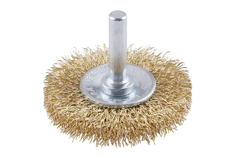 Rotační kartáč - okružní, provedení : vlnitý drát 0,25 mm - pomosazený, průměr 50 mm, stopka 6 x 27 mm, pozinkované tělo kartáče, počet drátů : 936, délka drátu : 12,5 mm, max. přípustné otáčky: 4500 1/min, použití : pro leštění, zdrsňování, ostranění rzi a otřepů, balení : blistr s eurootvorem.