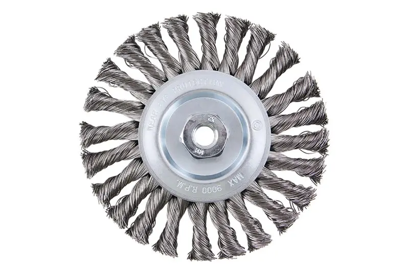 Rotační kartáč - radiální, provedení : COPY - patentovaný drát 0,5 mm - copy, se ani při extrémním zatížení nerozplétají, průměr 150mm, uchycení : závit M14x2 mm, pozinkované tělo kartáče, počet drátů: 1800, délka drátu : 34 mm, max. přípustné otáčky: 9000 1/min, použití : odstranění barvy, rzi, otřepů, zbytků po svařovení, strusky, zdrsňování, čištění kovoých součástí, balení : papírový box s eurootvorem.
