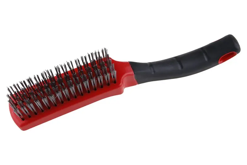 Ocelový kartáč - ruční, ocelový drát - pozinkovaný, plastové tělo, délka 270 mm, ergonomicky tvarovaná rukojeť, 5 řad, počet drátů : 1800, použití: k číštění železných kovů jako je ocel, nerez, litina, zdrsnění, a hrubé odstranění starých nátěrů, ….
