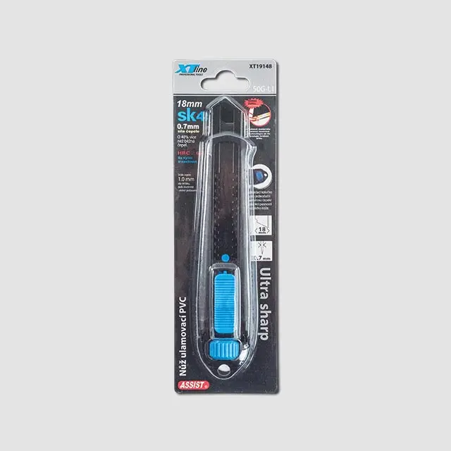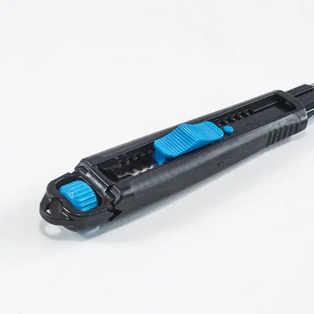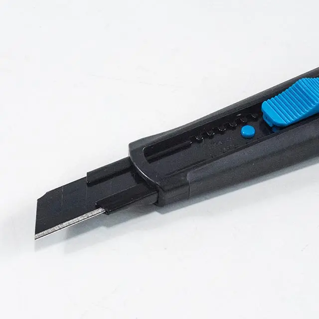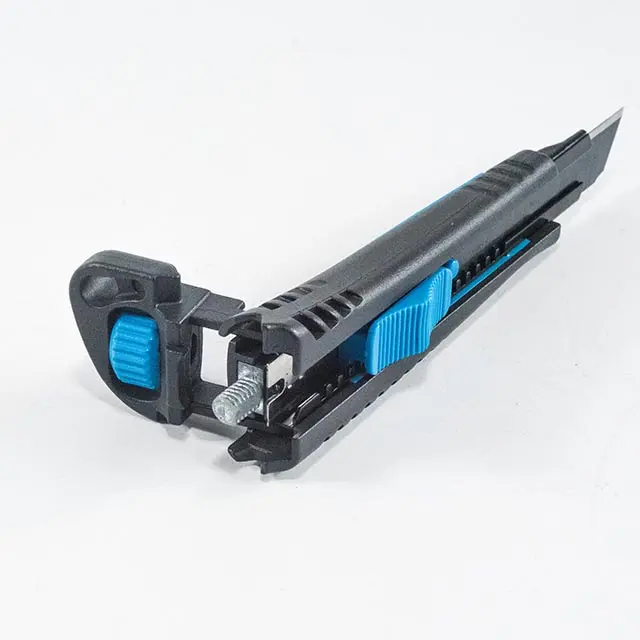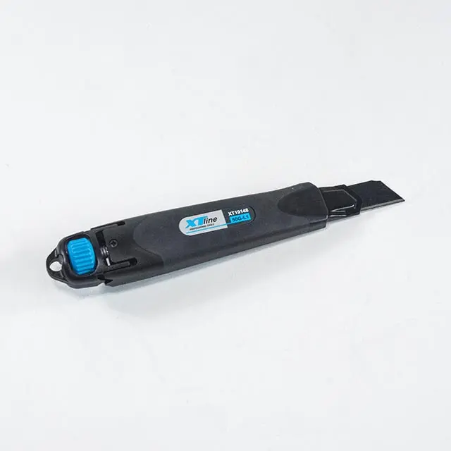 Ulamovací nůž s ABS vodící lištou. Ocelové vodítko čepele se vždy automaticky uzamkne proti pohybu. Šroubová aretace na zadní straně. Nůž má mezinárodní patent na aretaci břitu pro větší bezpečnost. Černěný povrch odolný proti korozi.