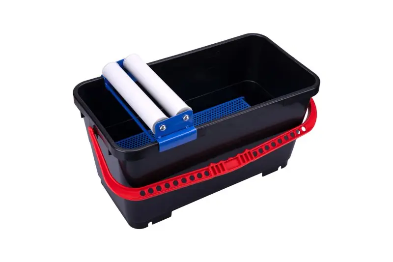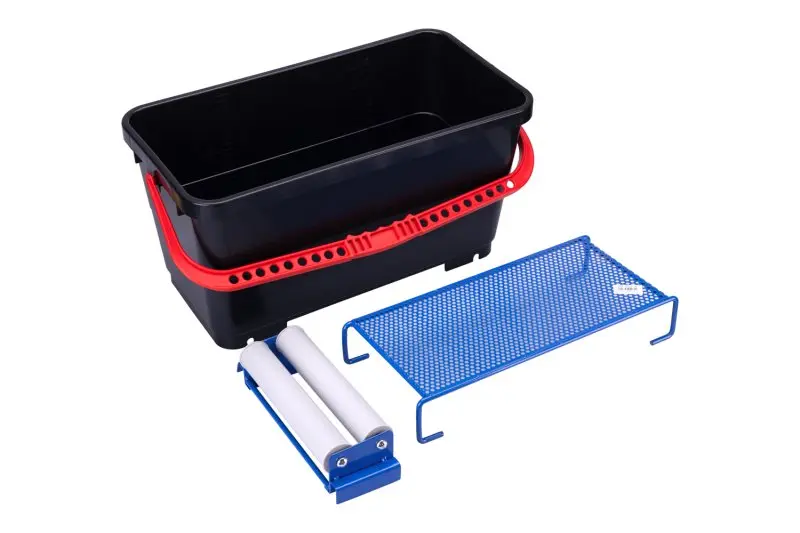 Vymývací vanička - sada, složení : nádoba 24l ( 90070 ), válečky ( 90071 ), kovová mřížka ( 90072), lehká a vysoce odolná plastová nádoba, kovové poplastované válečky a komaxitovaná mřížka, použití : slouží k vymývání hladitek a hub při vymývání sparovací hmoty po zaspárování, válečky slouží k vyždímání vody z hladítka, mřížka zamezuje výření nečistot ode dna nádoby.