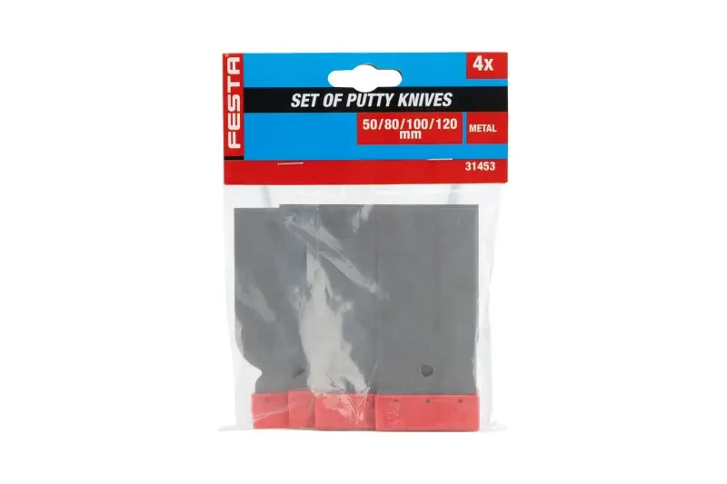 Sada stěrek japonských ocelových 4 ks 50, 80, 100, 120 mm FESTA. Ocelový břit, plastová rukojeť.