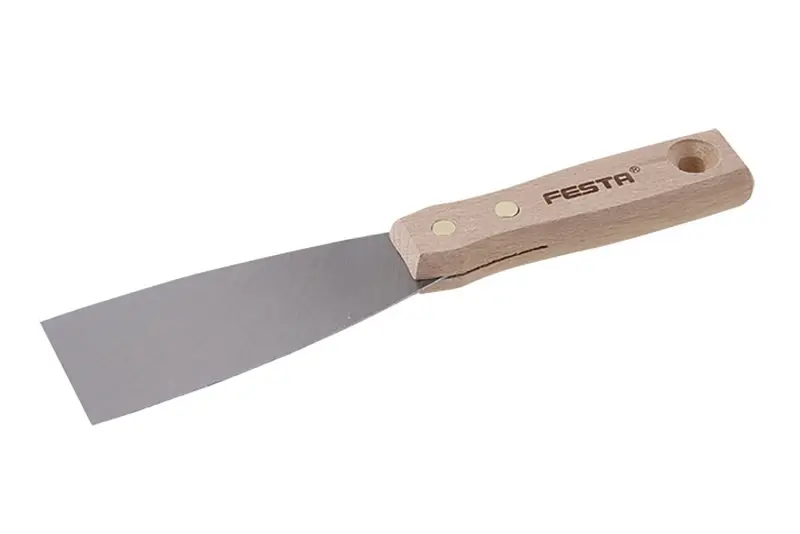 Malířská stěrka (špachtle) s broušeným ocelovým břitem a s dřevěnou nýtovanou rukojetí. Malířské stěrky se použivají pro zapravování děr, zeškrabavání přebytečného materiálu apod. Šířka břitu: 50mm