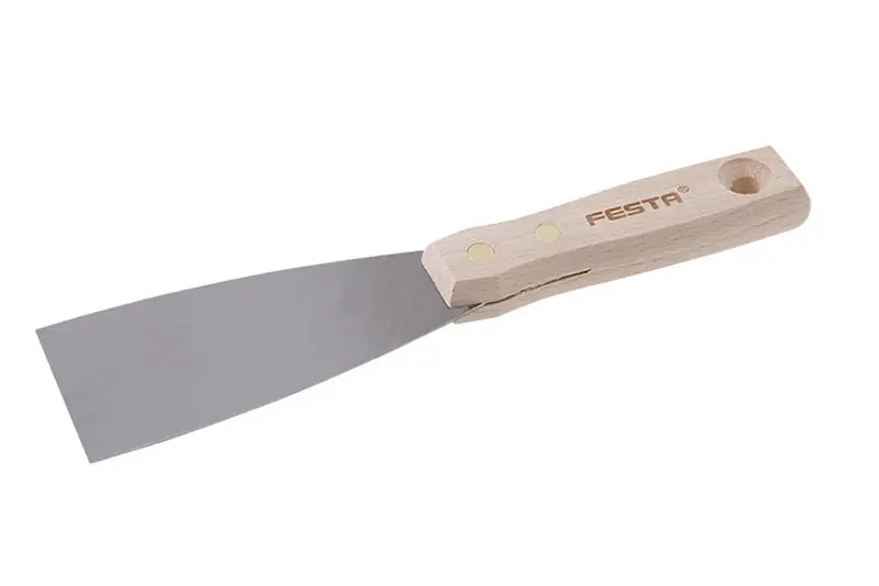 Malířská stěrka (špachtle) s broušeným ocelovým břitem a s dřevěnou nýtovanou rukojetí. Malířské stěrky se použivají pro zapravování děr, zeškrabavání přebytečného materiálu apod. Šířka břitu: 60mm