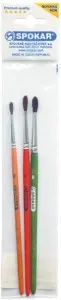 Kvalitní školní štětec SPOKAR, kulatý, má dřevěné lakované držadlo, jemná živočišná vlákna, viditelná délka vláken 11 až 14 mm, sada obsahuje velikost číslo 2, 4, 6.