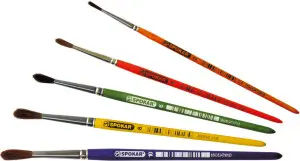 Kvalitní školní štětec SPOKAR, kulatý, má dřevěné lakované držadlo, jemná živočišná vlákna, viditelná délka vláken 11 mm, velikost číslo 2.