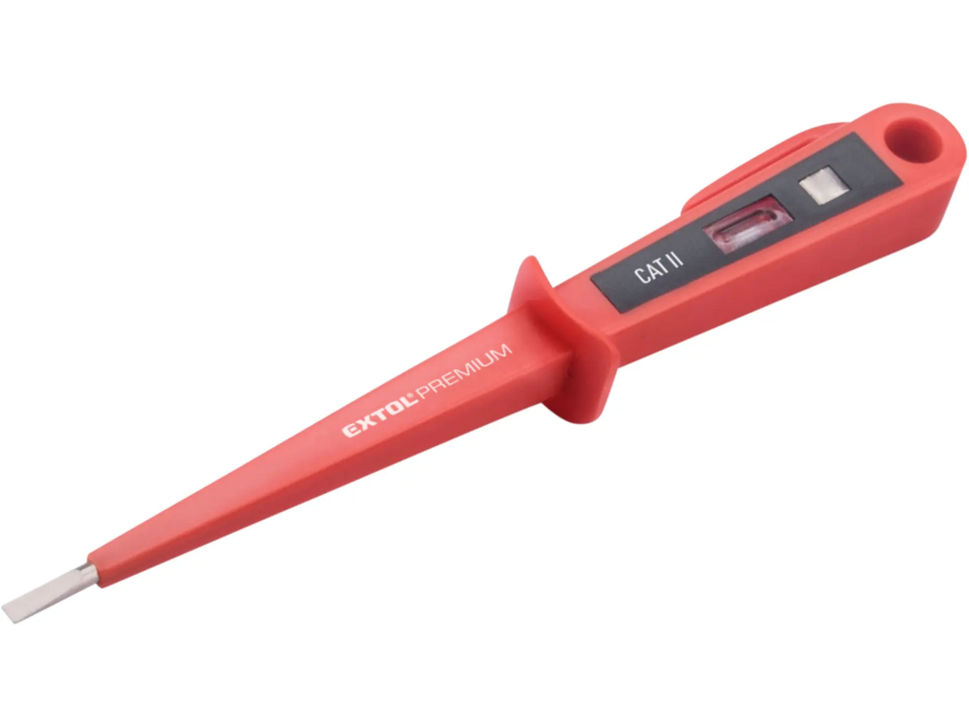 plochý šroubovák (-)3,5mm, rozsah měření 100--250V AC (střídavý proud), pracovní podmínky: frekvenční rozsah 50-500Hz, pracovní teplota -10°C až 50°C, pracovní vlhkost 45-75%