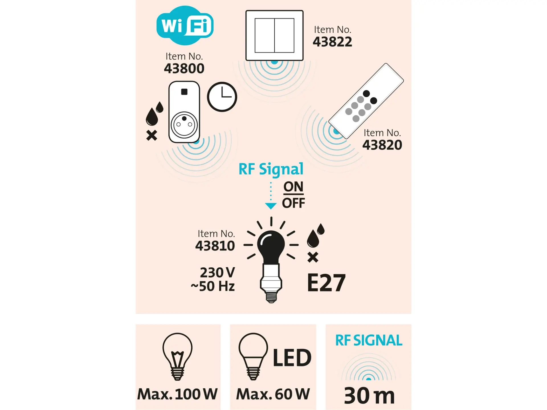 funkce: vypnout/zapnout, možnost spárovat s až 5ovladači, trvalá paměť, 433,92MHz, bez dálkového ovladače