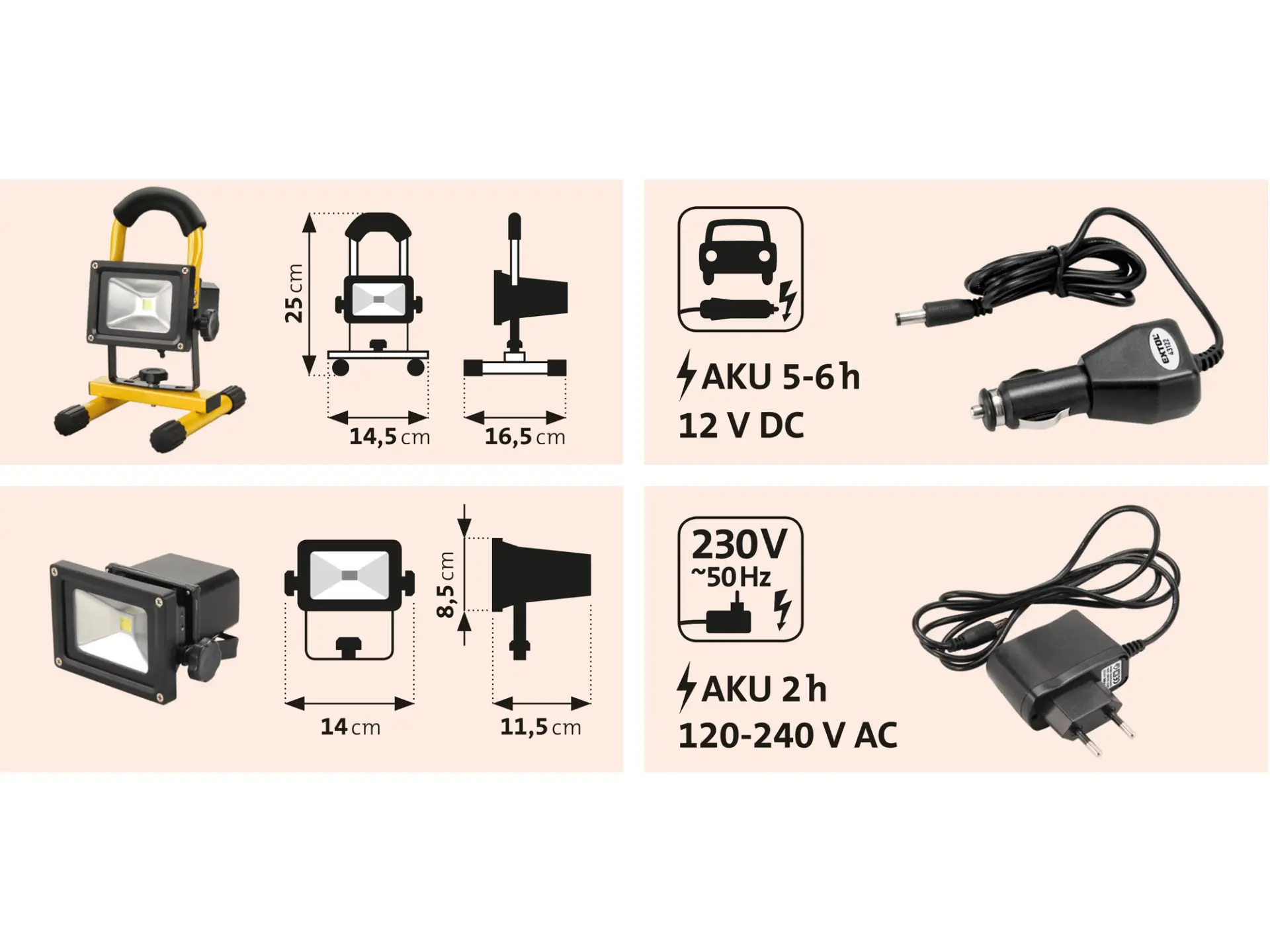 • rychlá nabíječka na 230V nabije reflektor za 2 hodiny