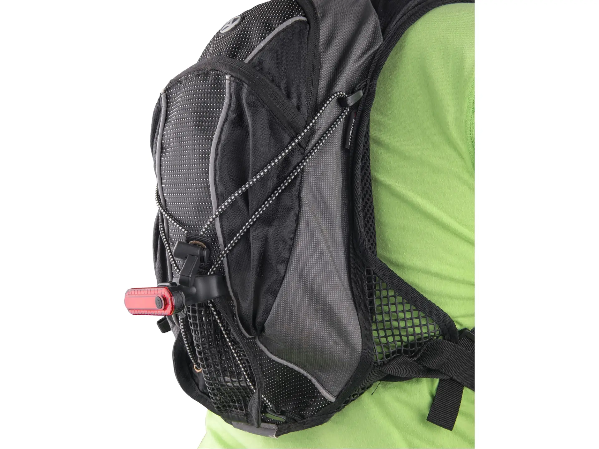4 módy světla: 100%–blikání1–blikání2–blikání3, čas svícení: 3–15–6–8h, USB nabíjení, baterie: 3,7V Li-pol 220mAh, USB micro kabel, IPX4, hmotnost s baterií: 39g