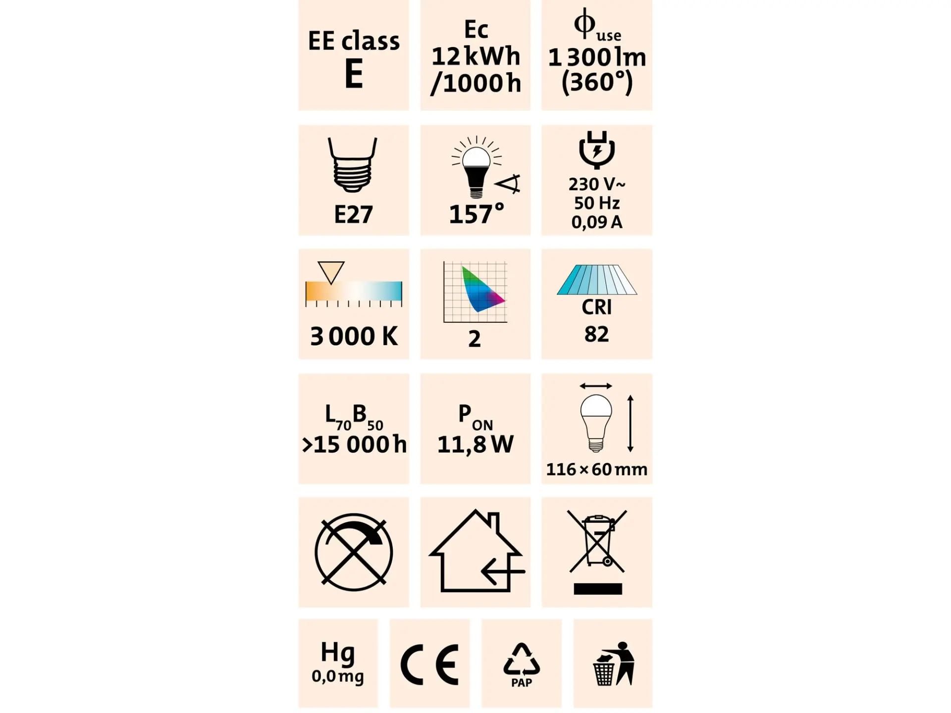 teplota světla: 2800K, úhel svítivosti: 240°, svítí jako 75W klasická žárovka, velikost:118x60mm