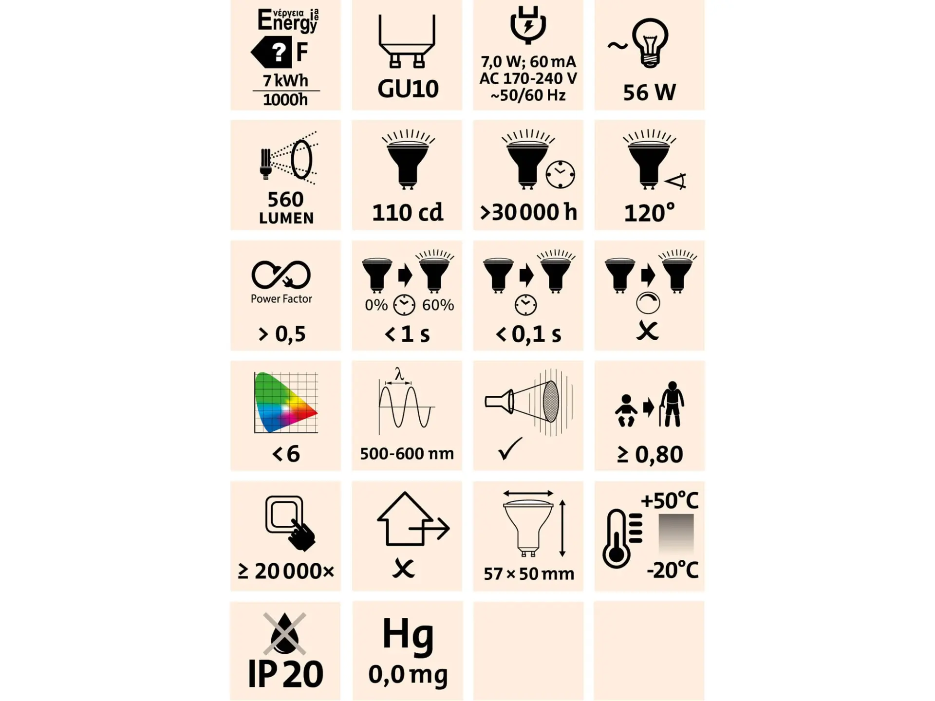 životnost: 30000 hodin, 20000 zapnutí, CRI:>80