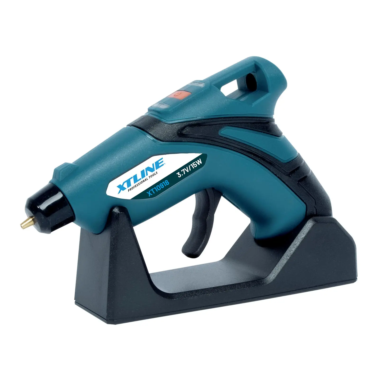Akumulátová tavná lepicí pistole se používá pro lepení a spojování dřeva, kartonu, umělých hmot, keramiky, korku, kůže apod. Nenahraditelný pomocník v dílně, domácnosti, při vytváření dekorací nebo aranžmá. Hlavní předností je komfortní práce bez nutnosti použití přívodního kabelu, pistole je totiž vybavena nabíjecí základnou, když s pistolí nepracujete - po vložení pistole do základny se začne okamžitě nabíjet. Baterie Li-Ion umožňuje dobíjení, aniž by docházelo ke snižování životnosti akumulátoru.
