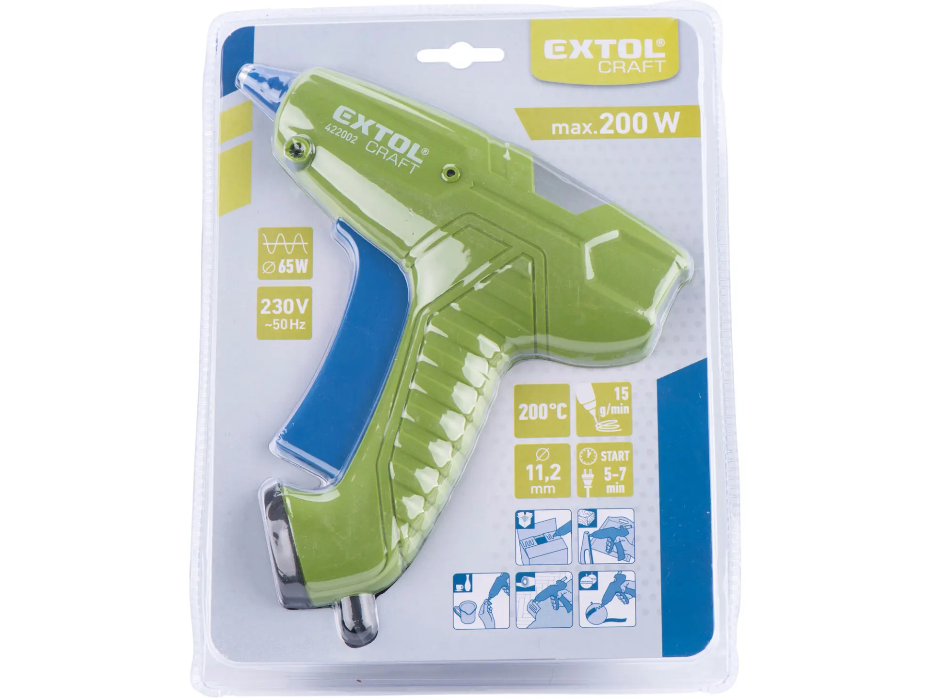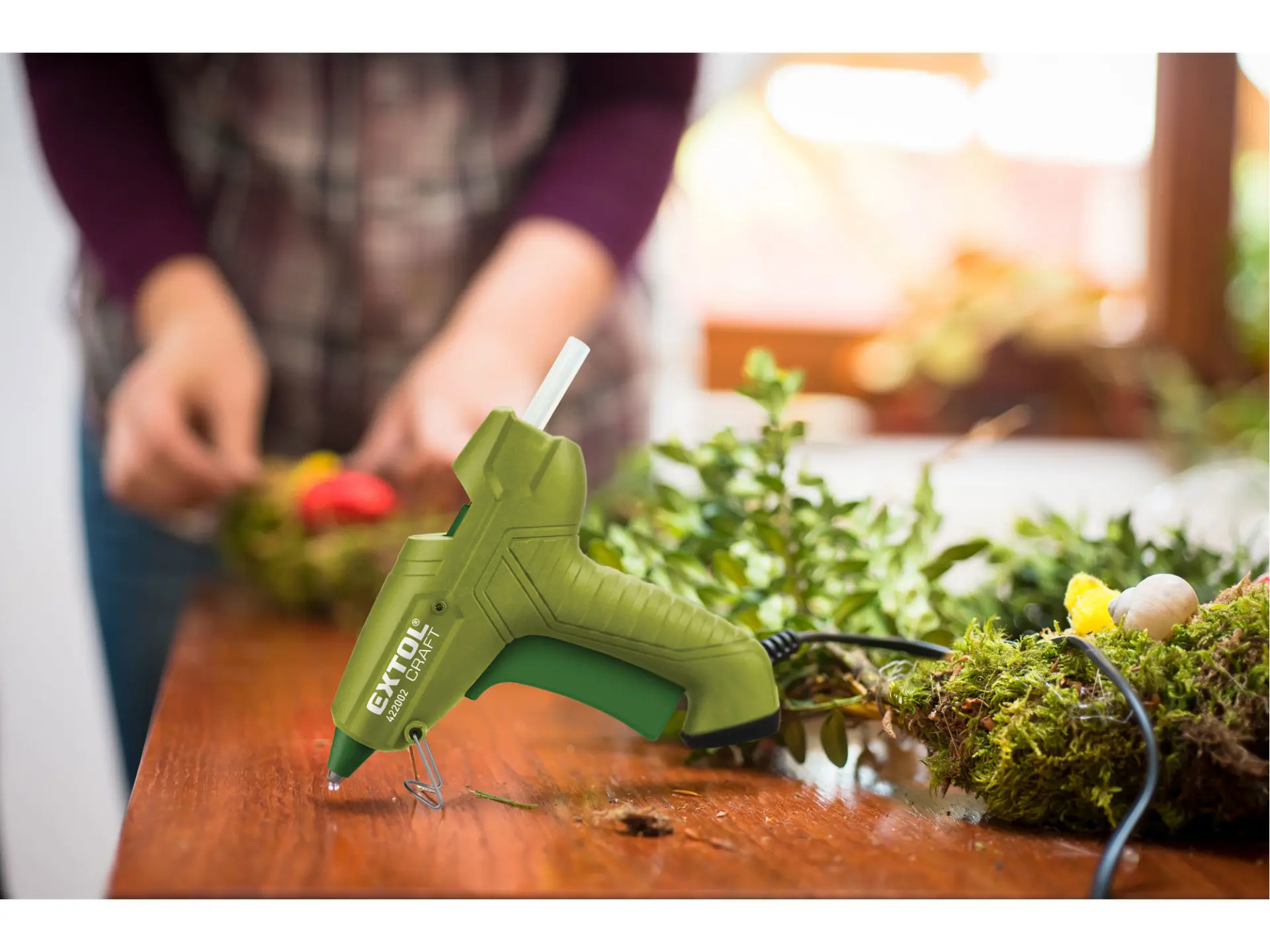 Lepící tavná pistole je určena k rychlému slepení papíru, korku, dřeva, kůže, textilie, umělé hmoty, keramiky atd. Páčka mechanického posuvu umožňuje citlivé, plynulé a přesné dávkování roztaveného lepidla na požadované místo.