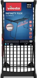 Vileda Infinity Flex je moderní a praktický sušák na prádlo v elegantním matně černém provedení s celkovou sušicí plochou až 30 metrů.