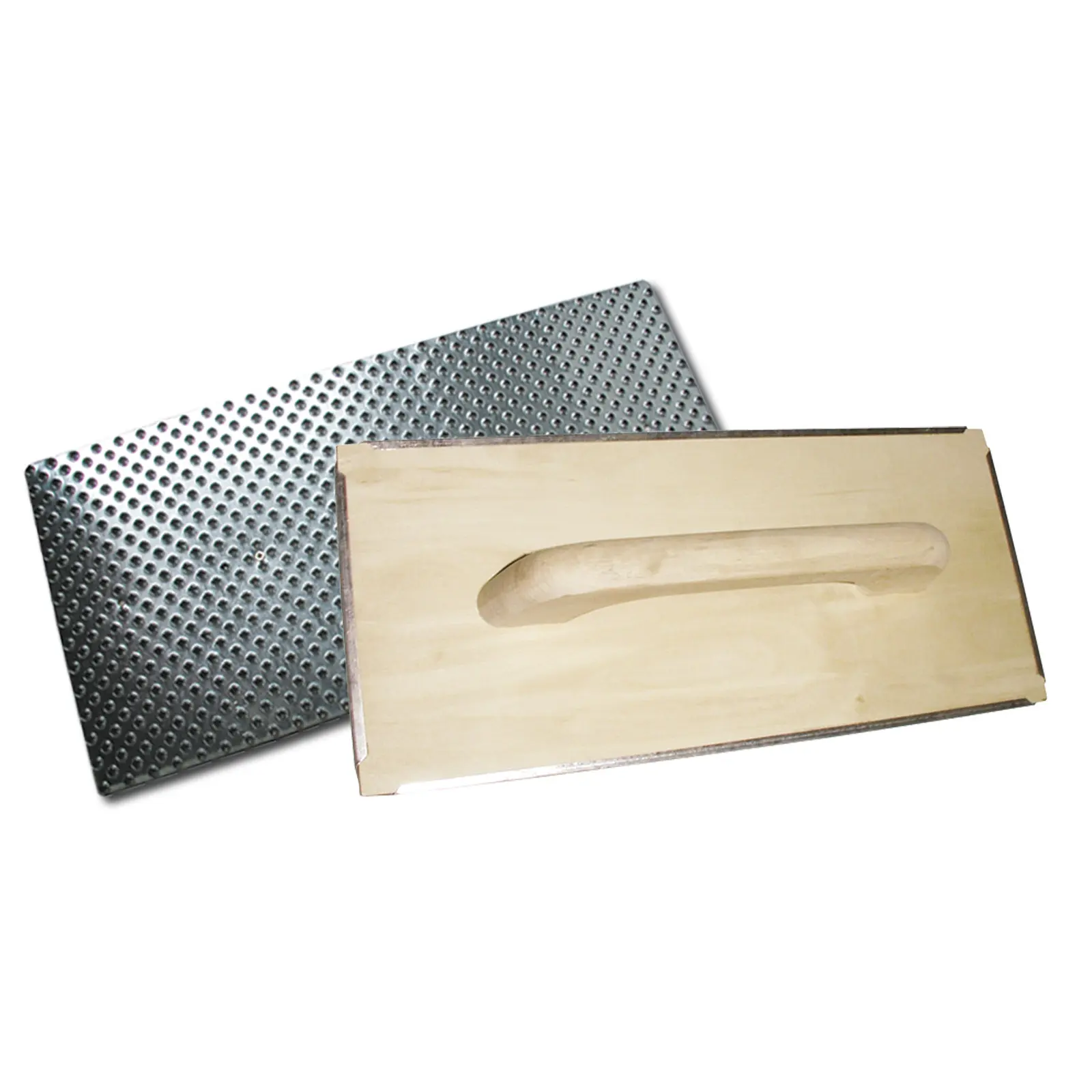 Hladítko s plechovým struhadlem pro broušení polystyrénových fasád.