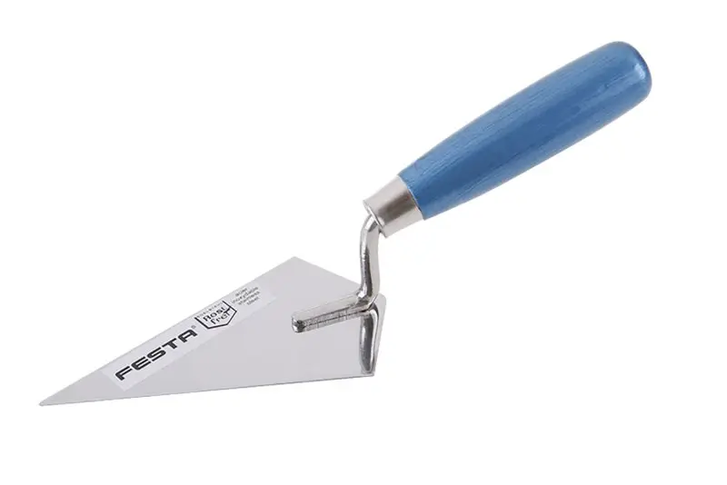 Pokrývačská nerezová lžíce FESTA 140x75 mm s dřevěnou ručkou. Lžíce pokrývačská je vyrobená z kvalitní nerez oceli o tloušťce 1,0mm. Zednická nerezová lžíce vhodná pro pokrývače.