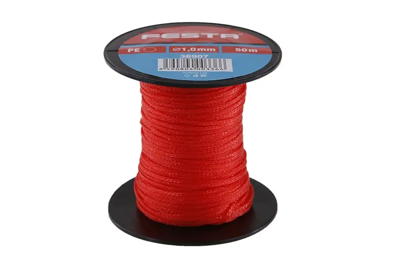Zednický provázek FESTA, materiál PE ( polyethylen ), odolný proti vodě, splétaný - vynikající vlastnosti v tahu, cívka - návin 50 m, použití : ve stavebnictví, v domacnosti, na zahradě…, .