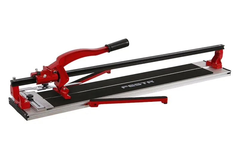 Řezačka dlažby FESTA X, maximální délka obkladu při řezu : přímý 900 mm, maximální tloušťka řezání obkladu / dlažby : 16 mm, kvalitní materiály i zpracování, posuv řezné hlavy zajištěn přes 6 ložisek po liště ve tvaru X - jednoduché a přesné přímé i případně diagonální řezání, pro přesné diagonální řezy přiložen stavitelný úhelník 0 - 45 °, snadné řezání i lámaní, pro lepší a přesné zlomení tři podložky z tvrzené pružné gumy, přesné měřítko, kvalitní řezné kolečko z karbidové oceli uloženo na ložisku - objednací kód 36138.