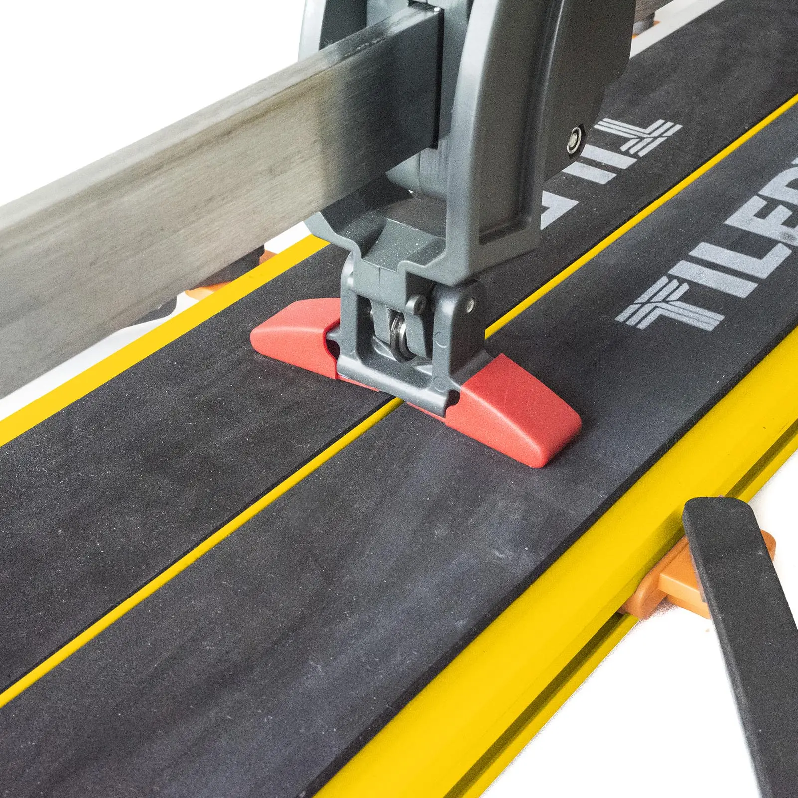 Masivní řezačka obkladů a dlažby. Ložiska uložená v kovovém pouzdře pro přesný a snadný řez. Vůle způsobená provozem lze upravit seřizovacími šrouby. Úhloměr pro přesný úhlový řez. Páková lamačka umožňuje snadné lámání i velkých formátů dlažeb.