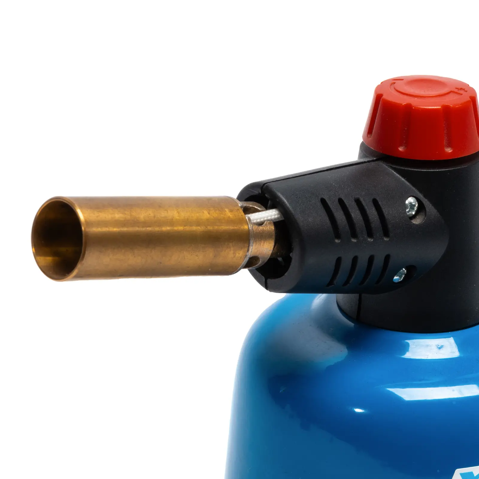 Pájecí souprava s piezo elektrickým zapalováním. Disponuje odolným kovovým obalem kartuše. Používá jednorázové propichovací kartuše a je vybavena tlačítkem na ovládání plamene.
