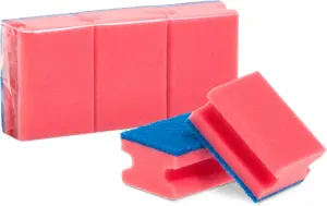 Houbičky na nádobí s vysoce kvalitní abrazivní vrstvou a ochranným prvkem pro ruce a nehty, PU houbička na nádobí, účinné mytí talířů a hrnců, s modrou drátěnkou.