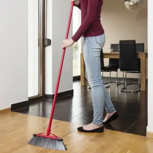 Měkké hrany zabraňují poškození nábytku. Kovová tyč s prodlouženou délkou až 130 cm pro pohodlný úklid.