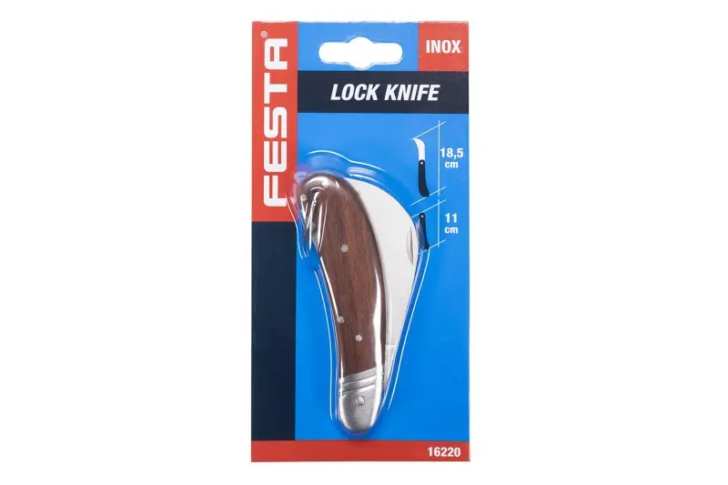 Štěpařský zavírací nůž, silná nerezová čepel, dřevěná rukojeť s kvalitním nýtovaním, univerzální zahradnický nůž pro očkování - roubování - řezání a úpravu dřevin a rostlin, délka čepele 110mm, blistr.