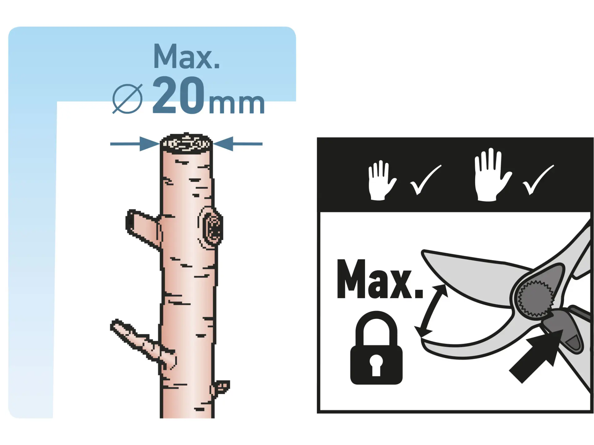 • dvoustupňový zámek nůžek umožňuje nastavení rukojeti s plným nebo částečným rozevřením