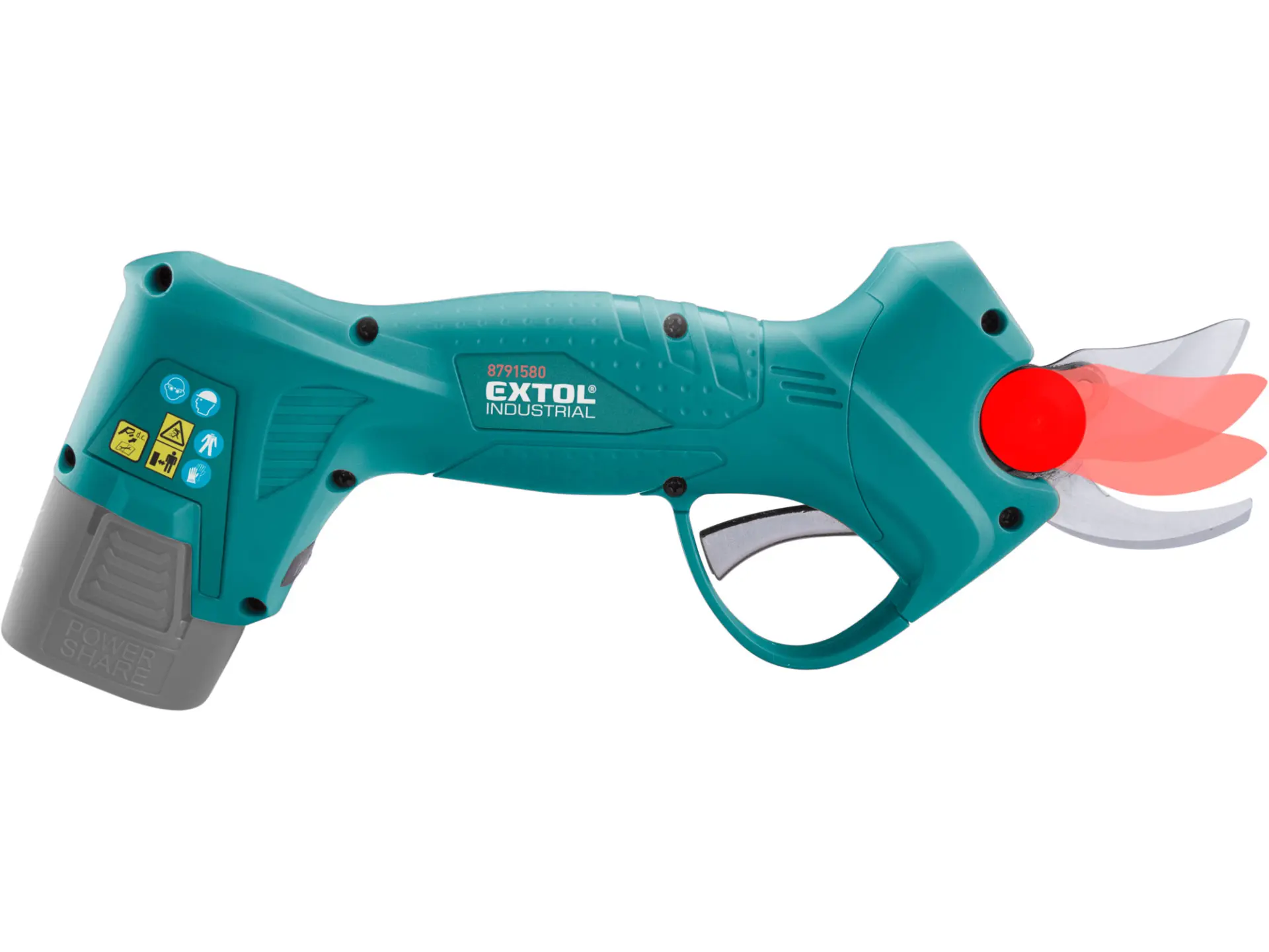 Profesionální zahradní aku nůžky umožňují snadné stříhání větví stromů a keřů a stonků rostlin o průměru do 25mm. Na jednu baterii můžete pracovat 4hod a nabíjí se 1,5hod. Při průběžném nabíjení lze s těmito dvěma bateriemi pracovat nepřetržitě celý den. Nůžky mají funkci elektronického nastavení vzdálenosti stříhacích břitů dle průměru větví, což urychluje práci a snižuje spotřebu a zajišťuje delší výdrž baterie. Stříhací čepele se mohou brousit a jsou snadno vyměnitelné. Při nečinnosti se nůžky uspí a poté je lze uvést do činnosti pouhým dvojitým stiskem spouště.