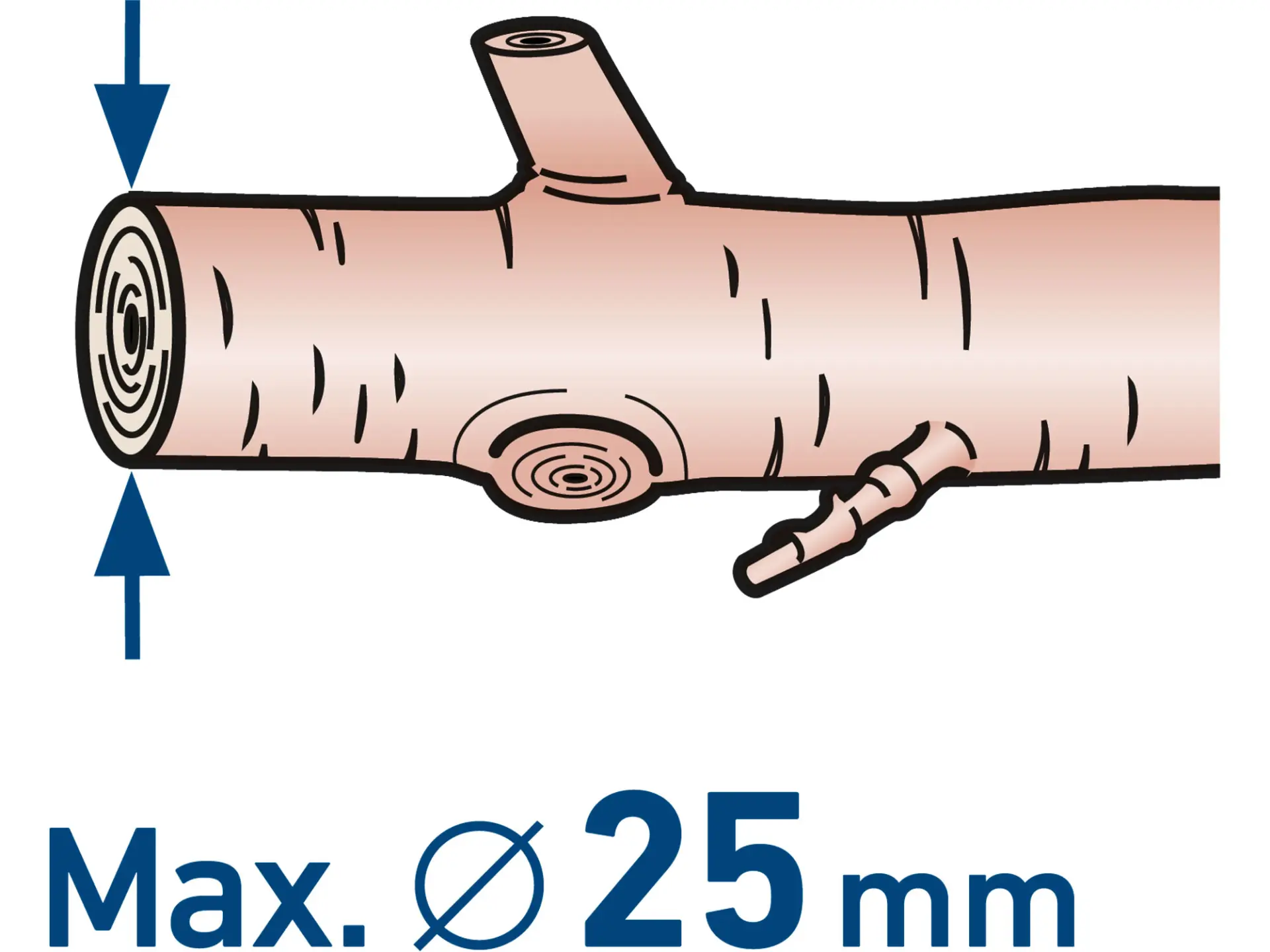Zahradní aku nůžky umožňují snadné stříhání větví stromů a keřů a stonků rostlin o průměru do 25mm. Nůžky jsou poháněné nejmodernějším „brushless" motorem. Tento nový typ motoru má vyšší životnost, je výkonnější a má menší spotřebu el. energie než klasické motory s uhlíkovými kartáči. Díky funkci elektronického nastavení vzdálenosti stříhacích břitů dle průměru větví, si můžete upravit parametry podle toho co stříháte, což urychluje práci a snižuje spotřebu a zajišťuje delší výdrž baterie. Tato vzdálenost lze nastavit na 10, 15 nebo 25mm. Stříhací čepele se mohou brousit a jsou snadno vyměnitelné. Při nečinnosti se nůžky uspí, aby šetřili baterii. Li-ion akumulátor lze díky použité technologii kdykoliv dobíjet, aniž by se tím snižovala jeho kapacita a velmi pomalu ztrácí energii vlivem samovybíjení a proto vydrží dlouho nabitý a připravený k použití.