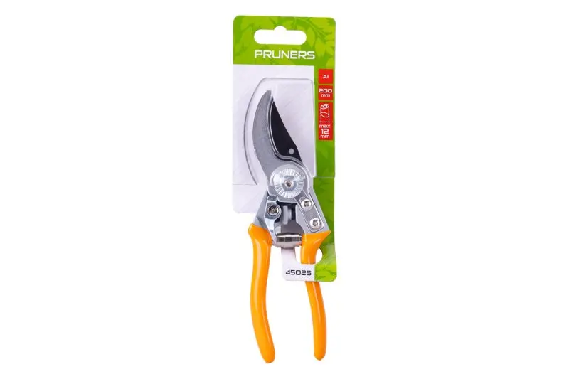 Zahradnické hliníkové nůžky s aretací a se dvěma kvalitními ocelovými břity jsou vsazeny do hliníkové kostry nůžek. Zahradnické nůžky mají na rukojetích speciální adhezivní plastový povlak proti vyklouznutí nůžek z dlaně. Celková délka 20 cm.
