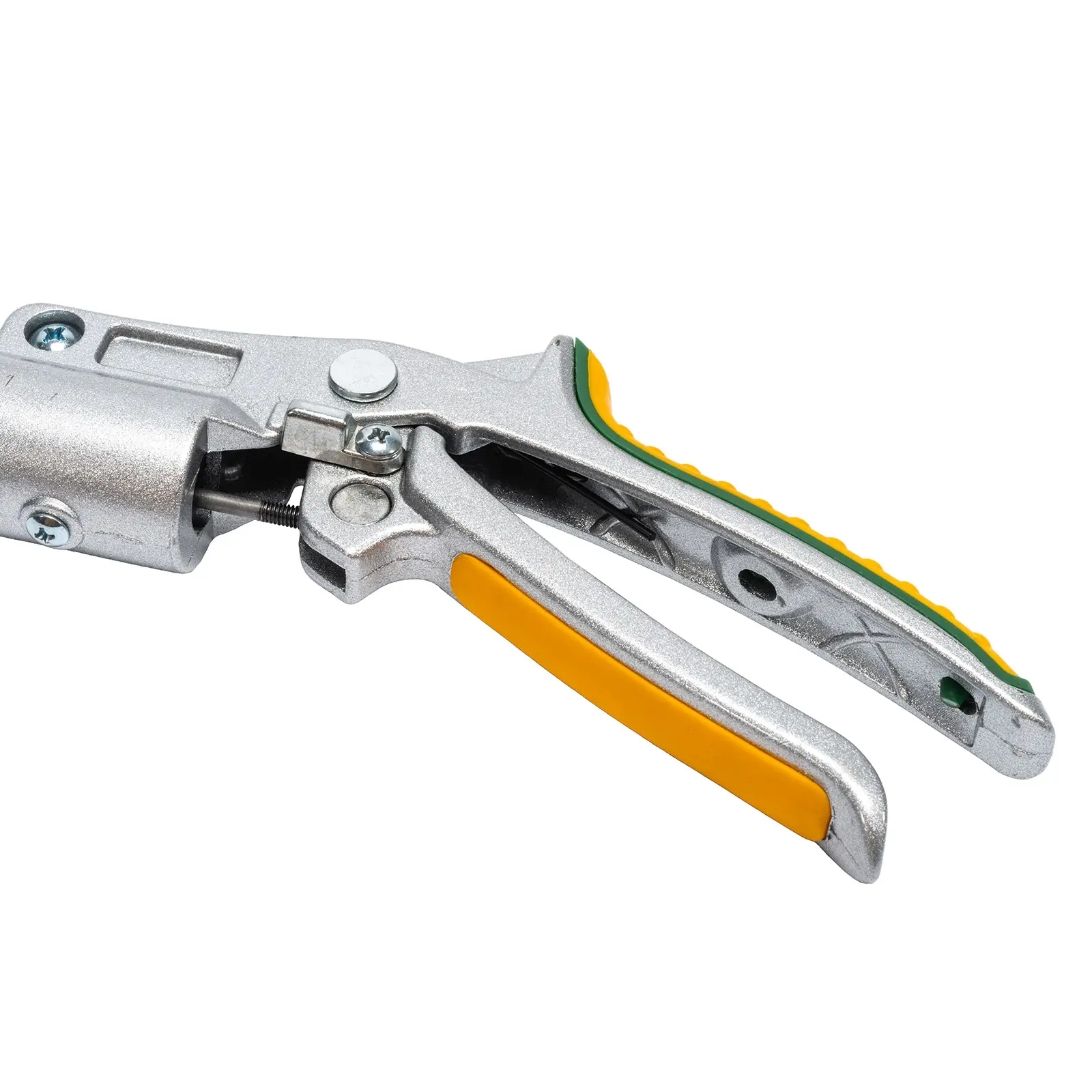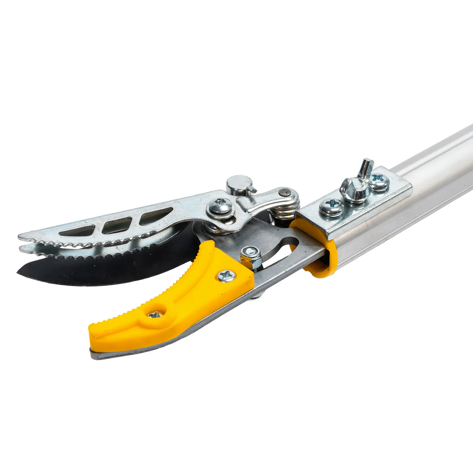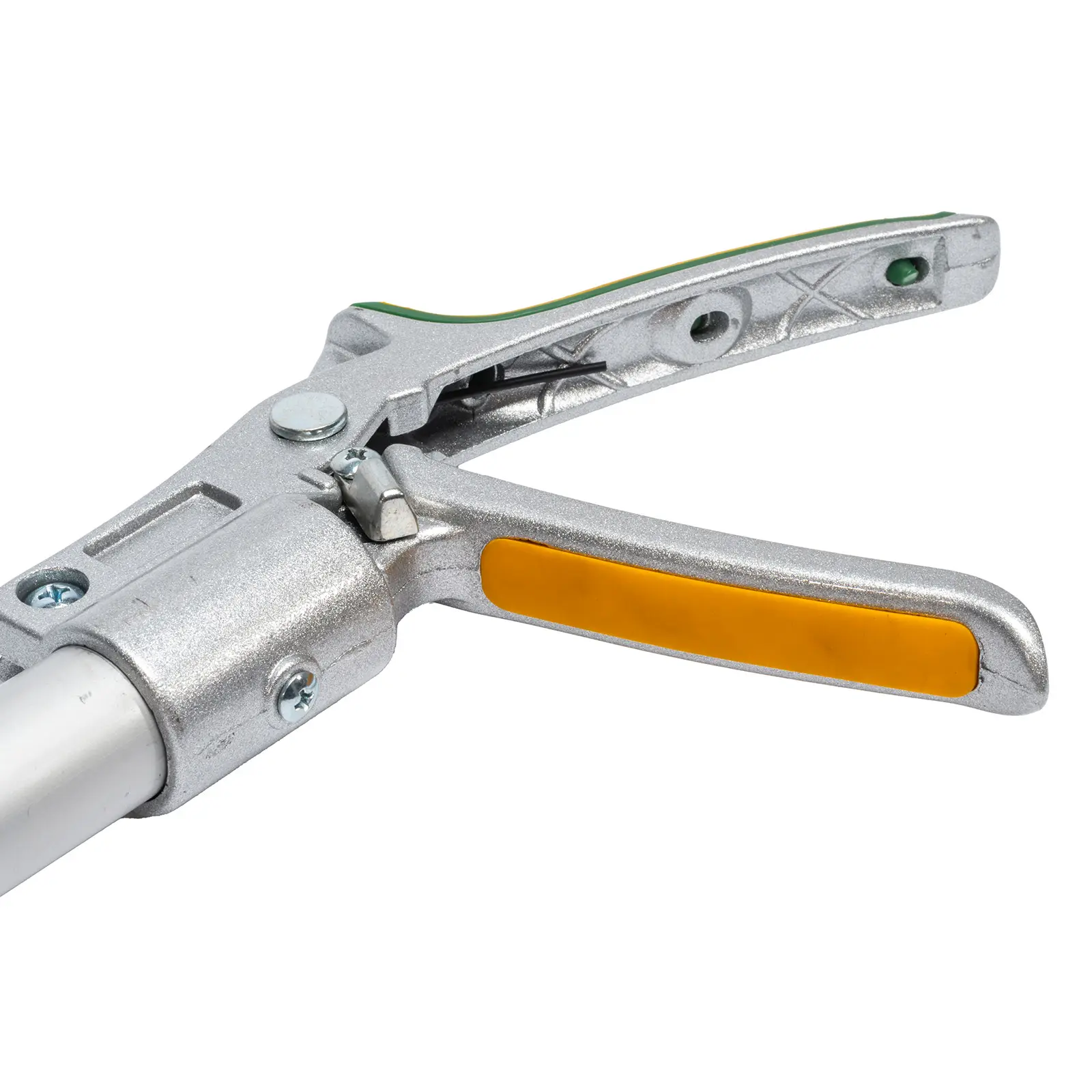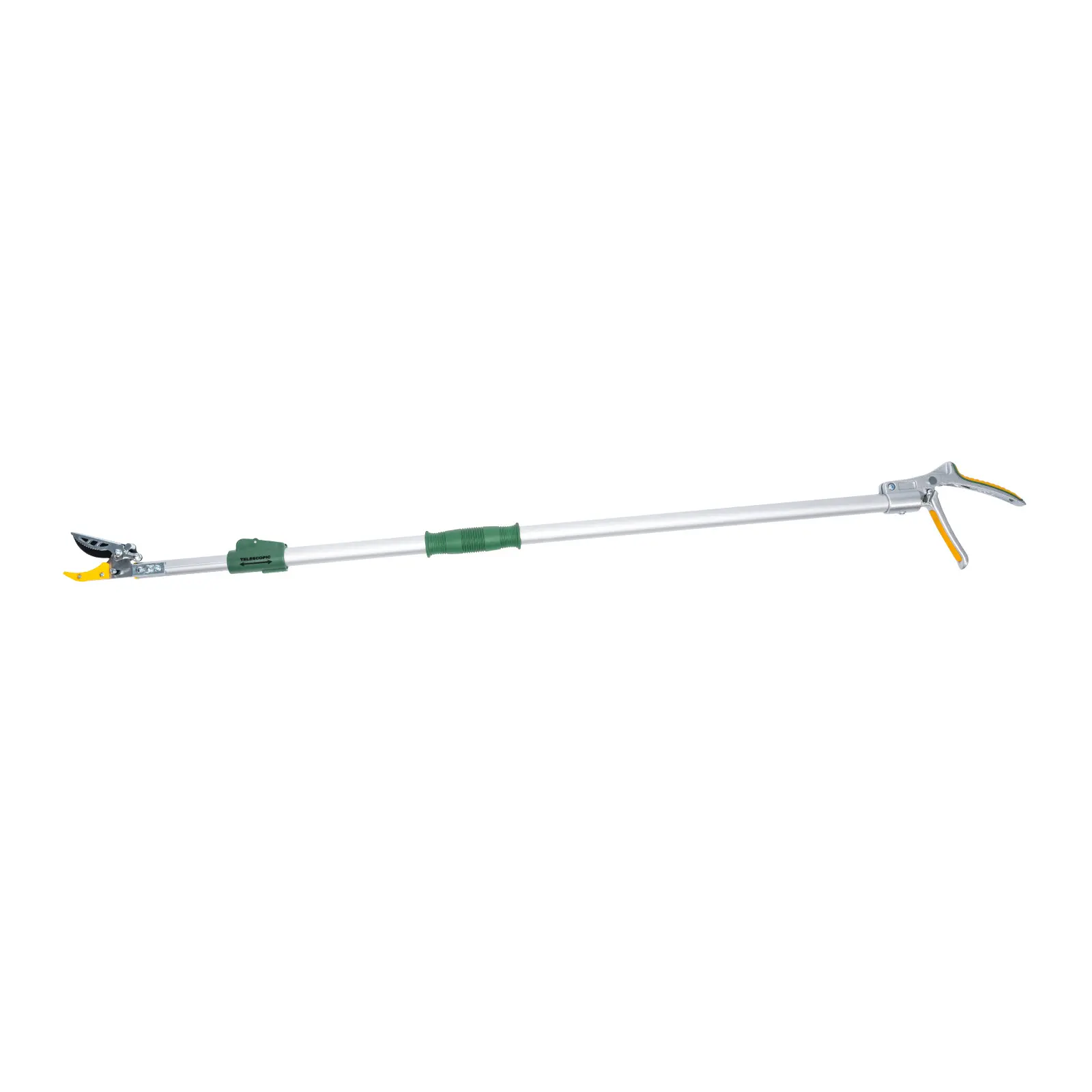 Nůžky se dají vysunout po 6 sekcích. Zubové úchyty na pružince slouží pro zajištění ustřižené větve. Plastovou rukojeť je možné posunout po celé délce tyče. Násada je otočná o 90°. Díky převodu stačí lehké stlačení páky. Odjištěním aretace prodloužíte délku rukojeti až na 2 m. Čepele je možné vyměnit za prořezávací pilku.