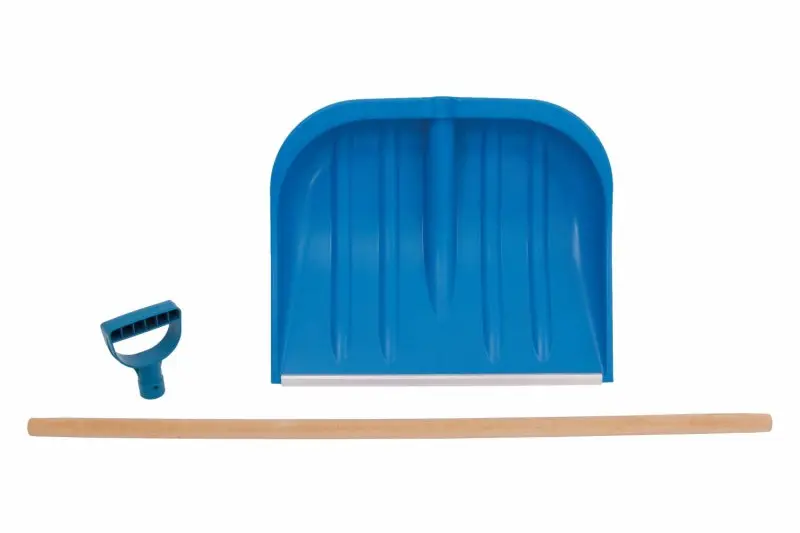 Kvalitní hrablo na sníh, pracovní část je z pevného plastu (polypropylen) odolávajícího nízkým teplotám se zpevněnou hranou hliníkovým/pozinkovaným profilem. Dřevěná násada. Materiál do -30°C.