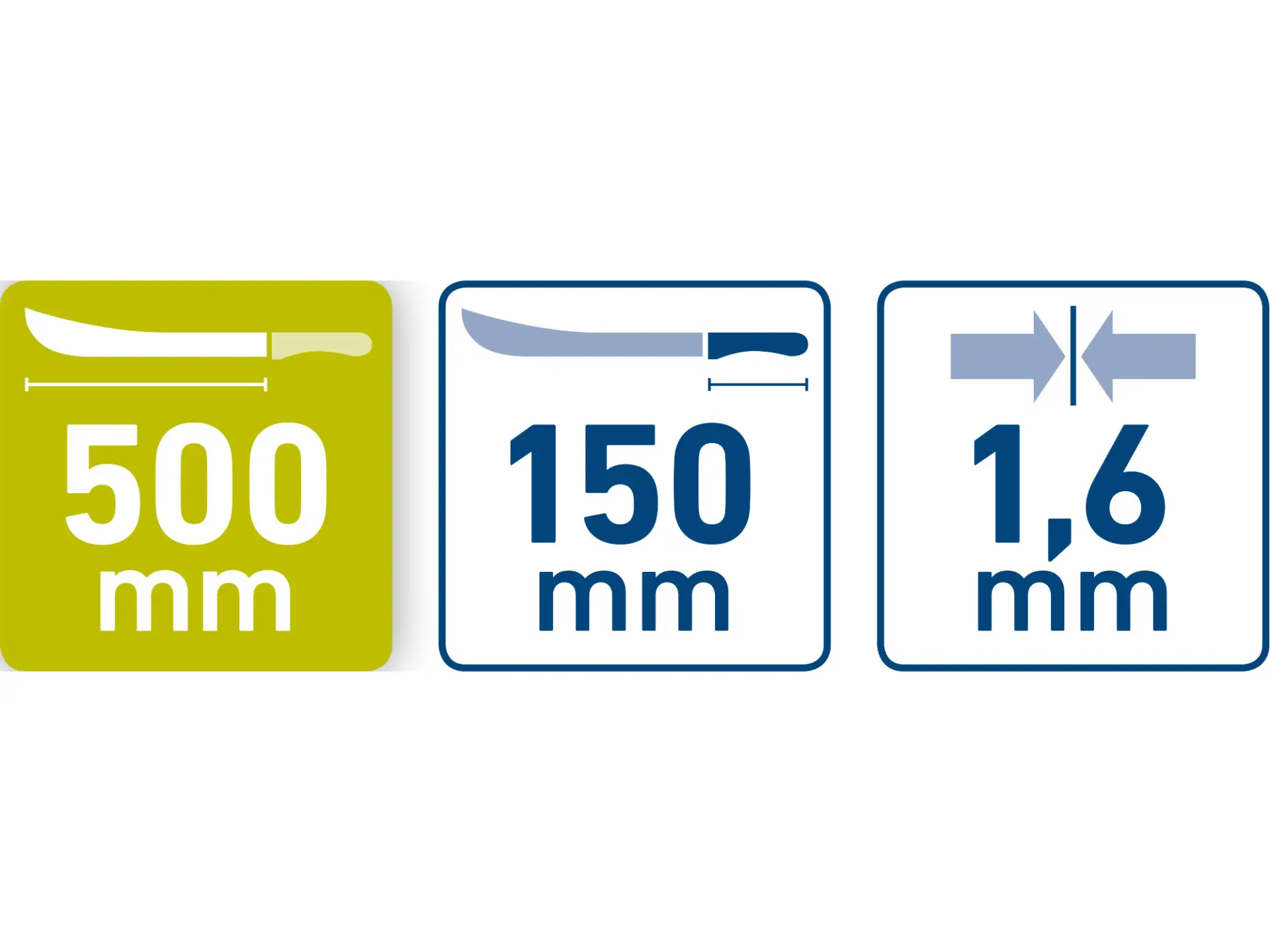 celková délka mačety 650mm, délka rukojeti 150mm