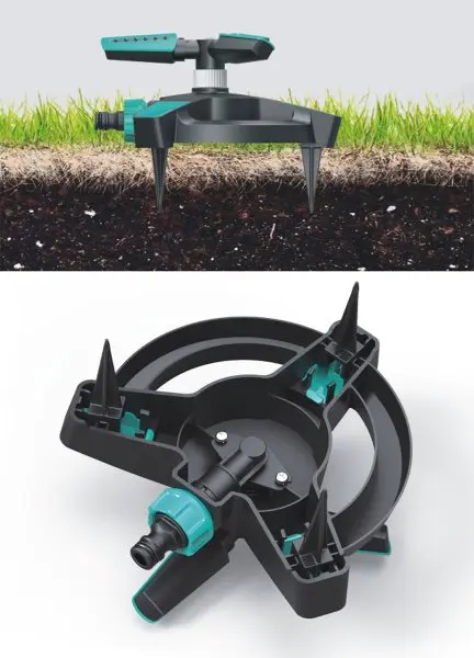 • základna s výklopnými hroty pro stabilní umístění zavlažovače