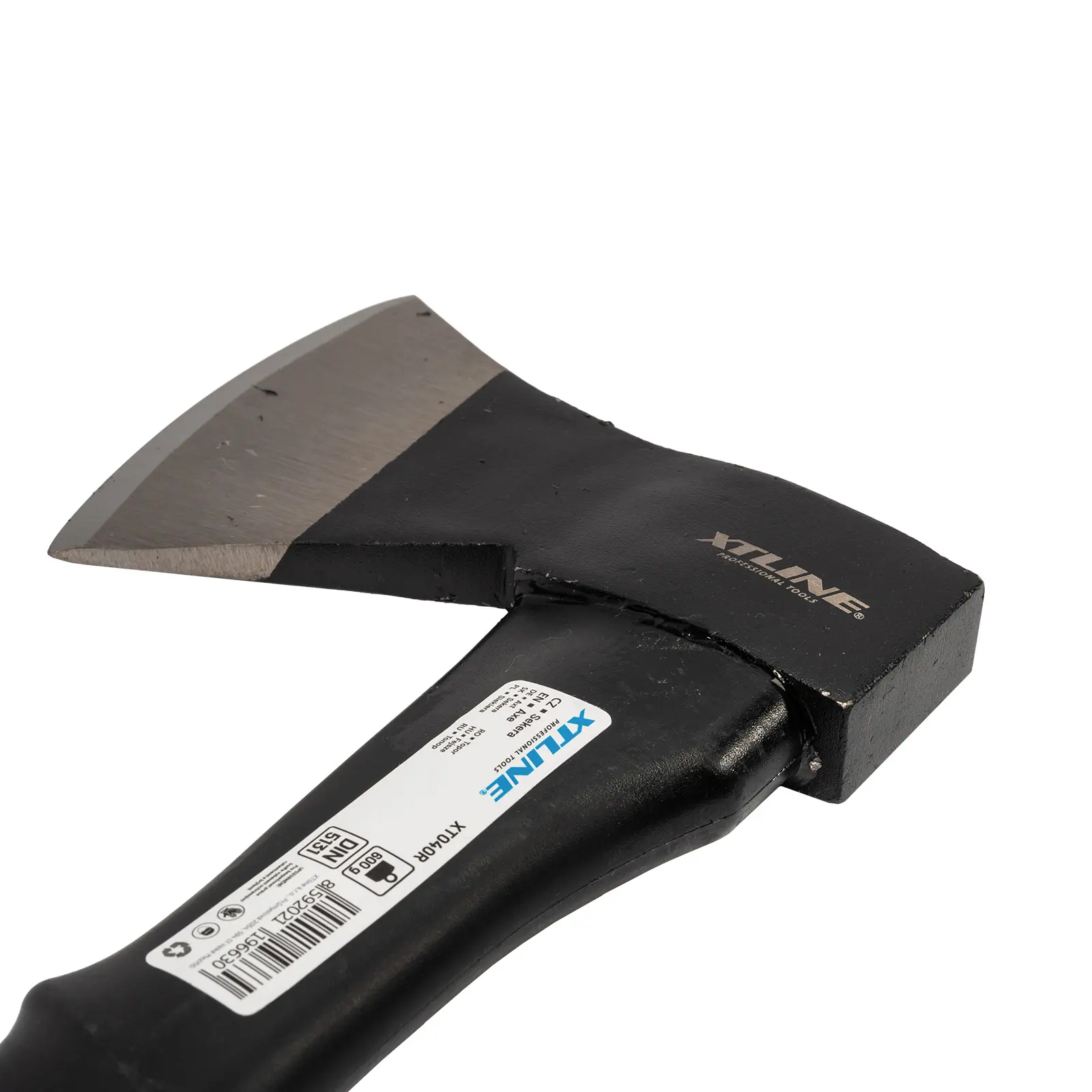 Sekera se sklolaminátovým topůrkem s pogumovanou rukojetí zabraňující prokluzu při práci. Sklolaminát tlumí nárazy při úderu a má dlouhou životnost. Hlava sekery z jednoho kusu oceli, opatřená černým nátěrem proti korozi.