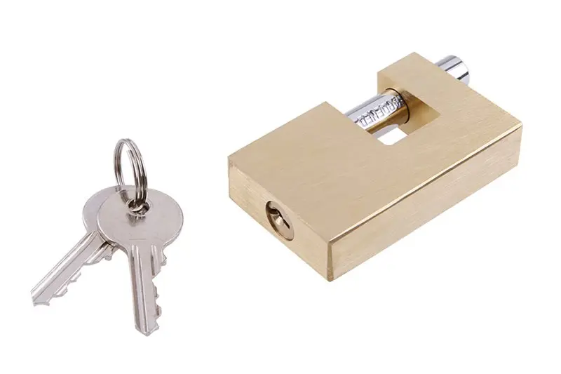 70mm zesílené mosazné tělo zámku Mosazná vložka Klíče: 2 Váha:322g Zesílený oblouk z tvrzené oceli pro lepší odolnost proti prořezání.