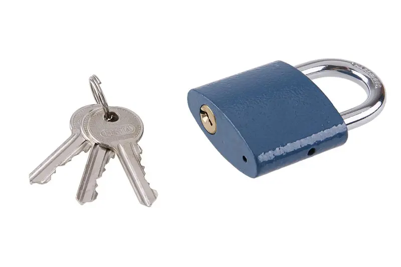Ocelové tělo zámku, Mosazná vložka, Váha: 290g, 3 klíče, Zesílený oblouk z tvrzené oceli pro lepší odolnost proti prořezání.