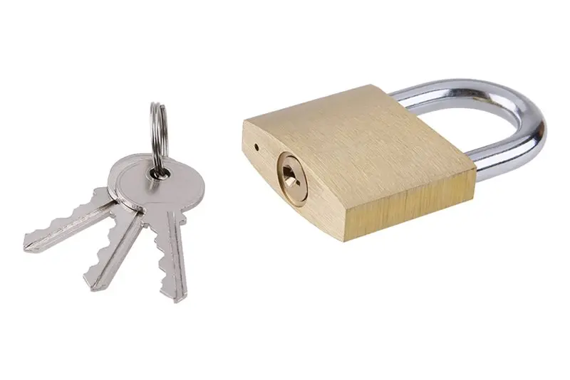 50mm zesílené mosazné tělo zámku Mosazná vložka Klíče: 3 Váha:270g Zesílený oblouk z tvrzené oceli pro lepší odolnost proti prořezání.