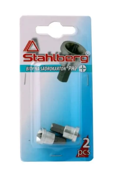Od světového výrobce STAHLBERG s mnohaletými zkušenostmi za použití nejnovějších technologií. Bit je vyroben přesným kováním (zvyšuje pevnost až o 20% oproti obráběným) z chromvanadiové oceli S2 (vyniká houževnatostí), tvrzené na 61-62 HRC. Díky nalisovanému talířku došroubujete povrch hlavy vrutu cca 0,7 mm pod povrch sádrokartonu. Baleno v praktickém uzavíratelném pouzdře po 2ks.