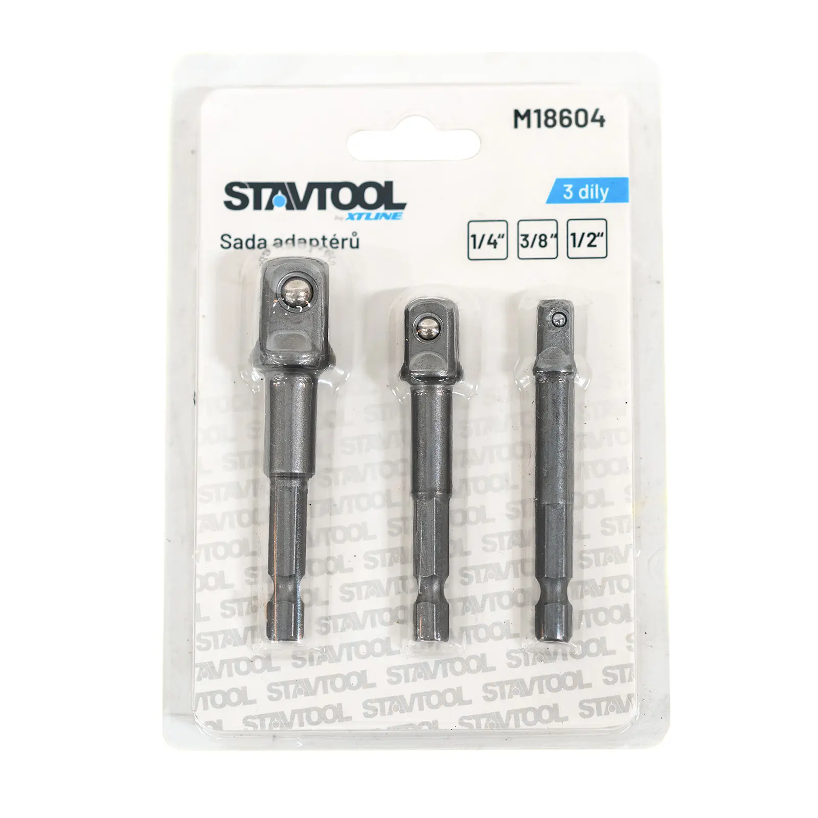 Šestihran se zářezem pro pevné nasazení do vrtčky. Čtyřhranné adaptéry s kuličkou pro používání různých havic a bitů na vrtačku.