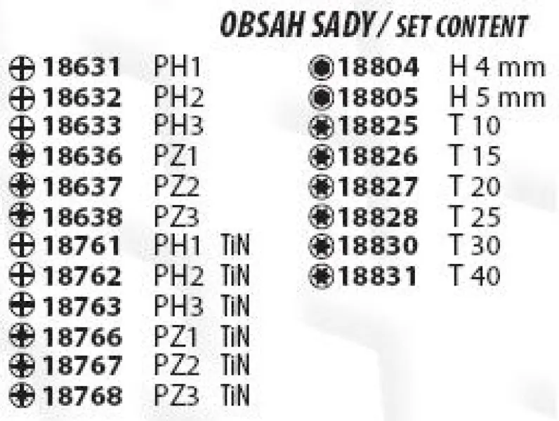 Od světového výrobce STAHLBERG s mnohaletými zkušenostmi za použití nejnovějších technologií. Praktická prodejní sada bitů, které jsou vyrobeny přesným kováním(zvyšuje pevnost až o 20% oproti obráběným) z chromvanadiové oceli S2 (vynikají houževnatostí), tvrzené na 61-62 HRC. Na pracovních plochách jsou diamantová zrna nebo drážky jako nejúčinnější ochrana proti vysmeknutí ze záběru. Zlatá, titan-nitridová vrstva (TiN) chrání bit proti otěru. Sada obsahuje 20 druhů po 10 kusech, cena je redukováva o 5% a plastový box je bezplatný dárek.