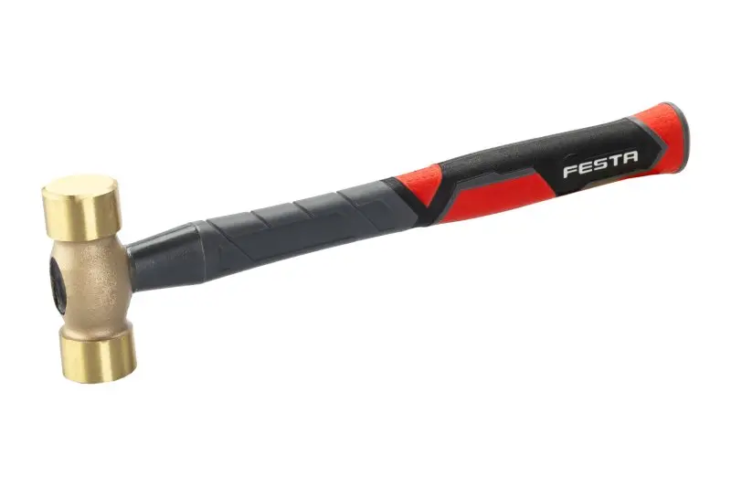 Mosazná palice FESTA 0,5 kg, průměr uderných ploch 30 mm, kvalitní sklolaminátová násada s pogumováním z TPR v úchopové části, zajištěná epoxidovým lepidlem, hlava palice je mosazná. Mosazná palice se používá tam, kde nesmí dojít při úderu k jiskření, usazování dílů atd..