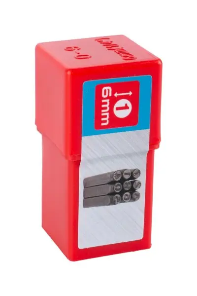 Ruční raznice - číslice, kvalitní uhlíková ocel - pevnost do 800 N/mm2, zakalené hroty - vysokká tvrdost, rozměry: výška písmen - 6 mm, balení: plastový box.